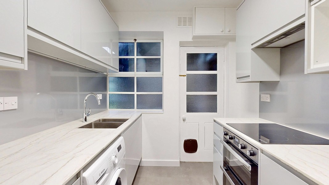 Situated in this highly sought after gated Art Deco mansion block - Meadowside, the accommodation comprises a south-facing bright reception room overlooking the gardens, two double bedrooms (one with fitted wardrobe), a modern fitted kitchen with all new appliances, and a contemporary bathroom with an over-bath shower. Finished with neutral décor and parquet flooring throughout, the flat is available unfurnished. Residents’ and visitors’ parking is available. An added benefit to the communal gardens is a tennis court.