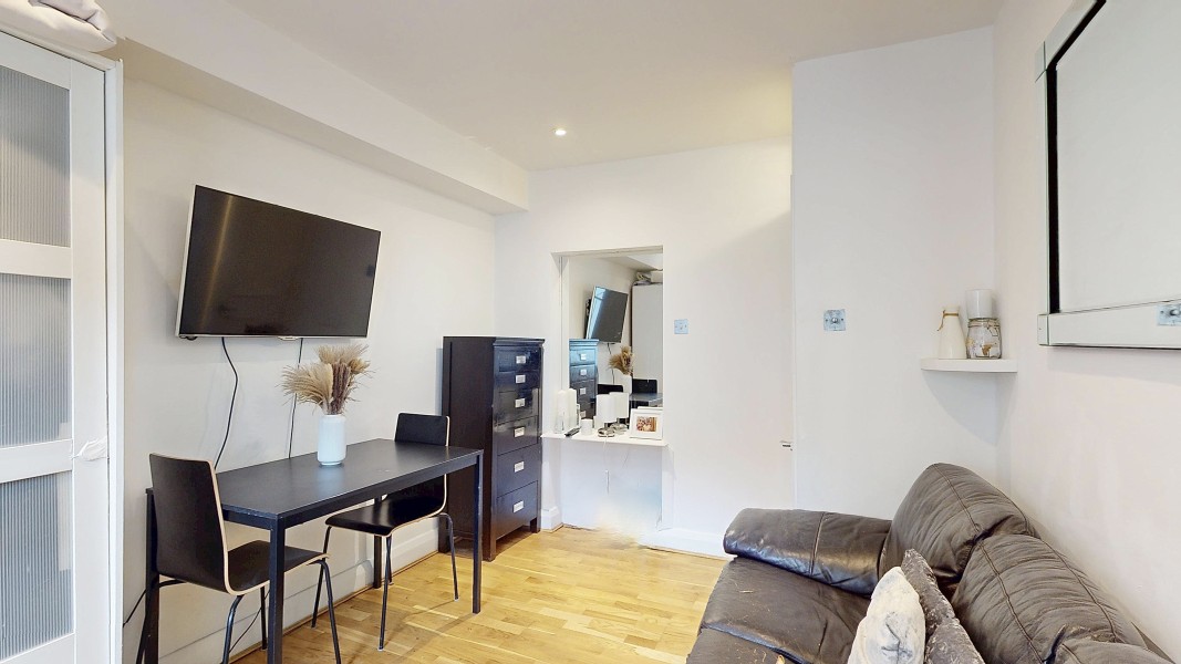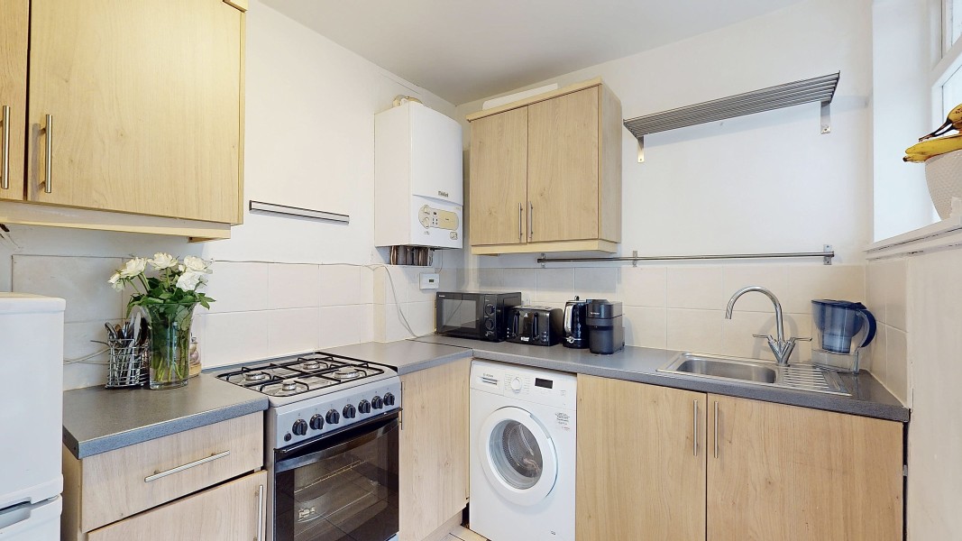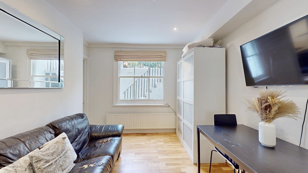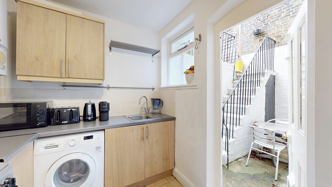 Parkgate are delighted to introduce this secure one-bedroom lower ground floor flat, complete with a private patio and access to a beautifully maintained shared garden. The property opens into a generous hallway with excellent built-in storage. From here, you’ll find the family bathroom, a well-proportioned double bedroom, and a bright sitting room with a pleasant outlook onto the private patio. The separate kitchen provides direct access to the patio, creating an easy indoor-outdoor flow ideal for morning coffee or relaxed evenings.