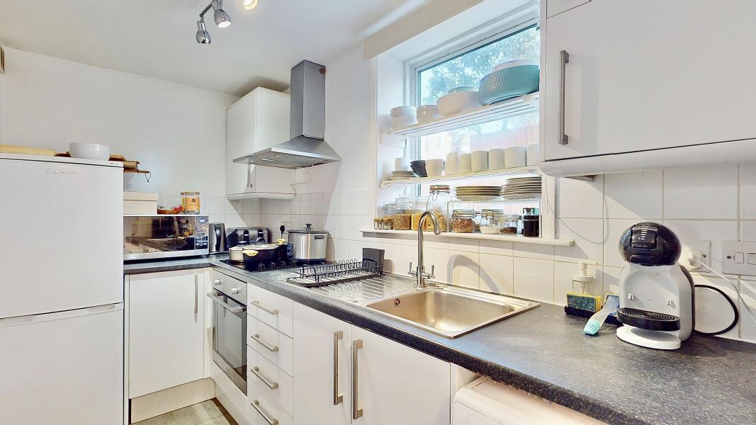 Step inside through your own private entrance and discover a spacious reception and dining area, enhanced by sleek wood flooring and flooded with natural light. The crisp white fitted kitchen is thoughtfully designed, while the contemporary bathroom adds a touch of elegance. The large double bedroom boasts excellent built-in storage, making the most of every inch.