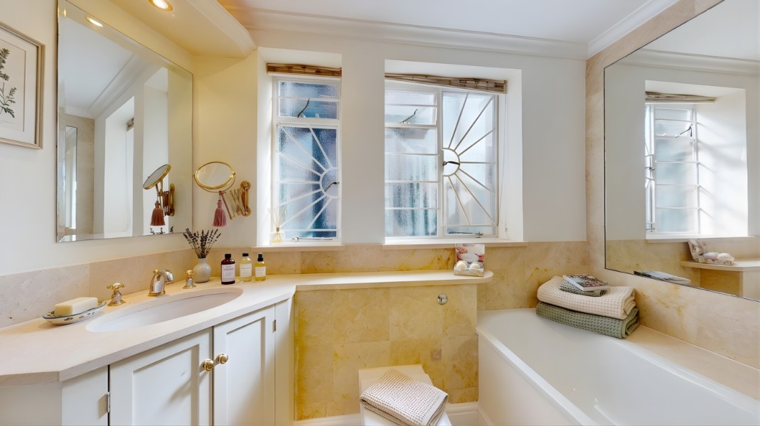 Elegantly decorated throughout, the apartment showcases charming period features complemented by a neutral colour palette. Further benefits include excellent storage, secure allocated parking (as well as unallocated residents' parking), 24-hour porterage, lift access, and the inclusion of hot water and heating within the rent.