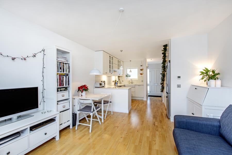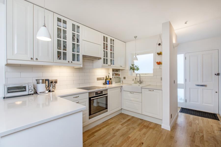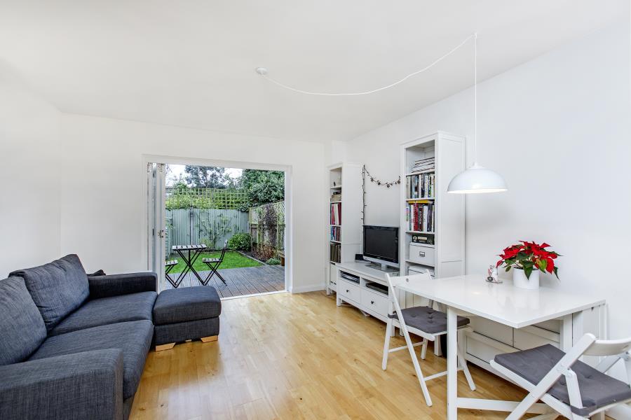 The ground floor has an open, bright and contemporary feel and has been laid out to offer the most effective use of space available, with access to the private south facing garden, with wooden decking area. The ground floor also has the added benefit of under floor heating. The first floor, also boasting good natural light, comprises of a study, or if you'd prefer second bedroom at the rear of the property. Fully tiled family bathroom with overhead shower and finally split level master bedroom with wardrobe/ dressing area and stairs leading to a sleeping platform.
