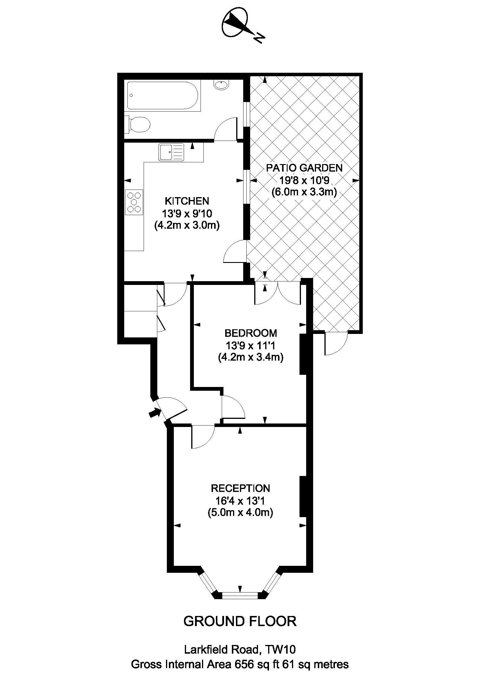 This stylish one bedroom garden flat is located within a quiet residential road moments from Richmond train station and within easy walking distance of the restaurants, bars and other transport links. Set in a Victorian terraced house the property is arranged over the entire ground floor and is set back from the road by a paved front garden with a side access to the private garden at the rear. Internally the flat offers spacious accommodation comprising of a double bedroom, large living area with bay window, modern fitted eat in kitchen with tiled flooring and modern bathroom with an over bath shower fitting. The private garden is also accessed via the kitchen and the bedroom.