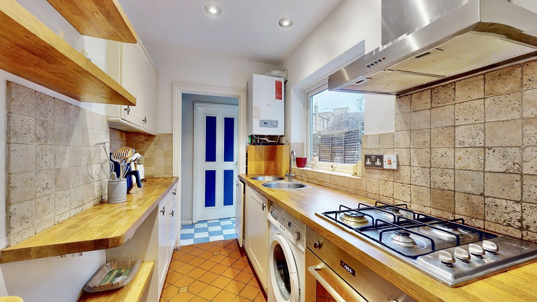 The ground floor features a welcoming reception room, offering ample space for both living and dining. This versatile room creates a comfortable setting for everyday relaxation as well as entertaining. The adjoining kitchen is well-appointed, with practical work surfaces and storage, and provides direct access to the private courtyard garden - a peaceful, low-maintenance outdoor space perfect for morning coffee, alfresco dining, or unwinding after a long day.